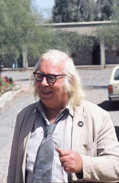 Freddie in characteristically relaxed dress at the conference in Sanaa in 1981. It was his habit to travel with only a briefcase, which mainly contained his papers and a carton of cigarettes. This could sometimes cause consternation to members of reception committees who would search fruitlessly in the baggage-reclaim areas of airports for 'Professor Beeston's suitcase', only to find that he did not have one. This photograph was used as the frontispiece to Sayhadica , the Festschrift presented to Freddie in 1987. Previous - Next © Seminar for Arabian Studies 2006.
