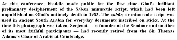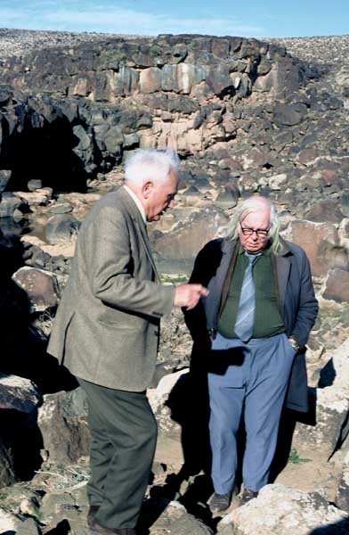 Professor R.B. Serjeant (left) and Freddie, at Jawa in north-eastern Jordan after the Memorial Symposium in honour of Mahmud al-Ghul, held at Yarmouk University, Jordan, in December 1984.