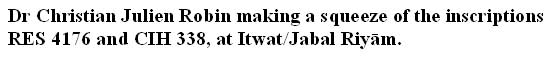 The texts deal with a pilgrimage and the ritual hunt at or near this place, and the constructions connected with it. In Proceedings of the Seminar for Arabian Studies 14 (1984): 33-41, Freddie published an edited version of Mahmud al-Ghul's study of RES 4176, followed by a discussion of CIH 338 on the basis of a photograph sent him by Christian Robin. Previous - Next © Seminar for Arabian Studies 2006.